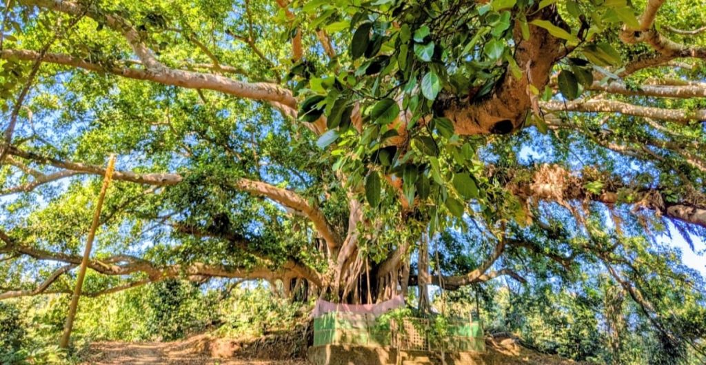 অবশেষে এই অগ্রাহয়নের শেষ দিকে মানিকছড়ি উপজেলার গাড়িটানা বাজারের নিকটে গাড়িটানা ত্রিপুরা পাড়ায় বহুল কাঙ্ক্ষিত সেই পাকুড় গাছ ও গাছের ছায়ার দর্শন পেয়েছি। ছবিতে দৃশ্যমান পাকুড় গাছের লোকমুখে প্রচারিত বয়স অনুমান সাতশত বছরে অধিক। অনুমান সত্তুর মিটারের অধিক জায়গা জুড়ে পাকুড় গাছের বিস্তৃতি। ছোট পাহাড়ের উপর ত্রিপুরা পাড়া পাশে পাকুড় গাছের শরীর জুড়ে অর্কিড ও ফার্ন আর অসংখ্য পাখির উপস্থিতি অন্য জগত সৃষ্টি করেছে। রোদ আর শীতল তাপমাত্রার সাথে আলোছায়া নিয়ে গথিক রোমাঞ্চকর পরিবেশ শরীর ও মনে প্রভাব রাখে। জমিন, গাছ, শব্দের জগৎ ও দৃশ্যের জগৎ মিলিয়ে মানবদেহের সবক’টি ইন্দ্রিয় জাগ্রত করে পাকুড় গাছের ছায়ায় কিছু সময় অতিবাহিত করলে স্মৃতি রোমন্থনের সঙ্গে সময়কে অতিক্রম করা সম্ভব হয়। শুনসান পাকুড় গাছের মুখোমুখি হয়ে নিজের ভিতর প্রবেশ করলে সময় অতিক্রমের সাথে সাথে পরমের সান্নিধ্য হাজির হয়। হাজির হয় আলৌকিক ও আলকেমি মুহূর্ত। এই অভিজ্ঞতায় হয়ত আপনি হয়ে উঠবেন একজন আলকেমিষ্ট !