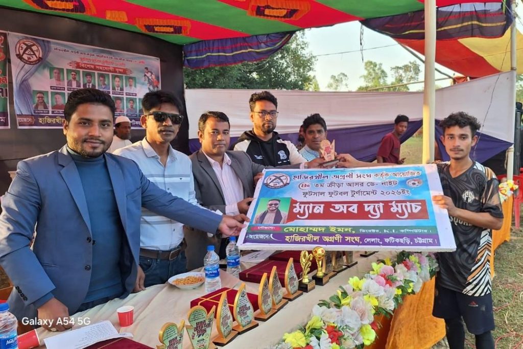 বিপুল উৎসাহ-উদ্দীপনা ও জাঁকজমকপূর্ণ আয়োজনের মধ্য দিয়ে লেলাং ইউনিয়নের শাহনগরে শুরু হয়েছে ‘হাজিরখীল অগ্রণী সংঘ ফুটসাল ফুটবল টুর্নামেন্ট–২০২৬’।