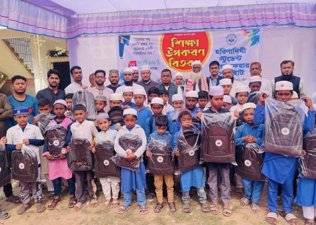সুন্দরপুরে বিভিন্ন স্কুল ও মাদ্রাসার শিক্ষার্থীদের মধ্যে শিক্ষাসামগ্রী বিতরণ করেছে হরিণাদিঘী স্টুডেন্ট ওয়েলফেয়ার সোসাইটি।