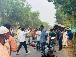 পেলাগাজী দিঘির মোড়ে ভয়াবহ সড়ক দুর্ঘটনা: ৩ জনের মৃত্যু ; শিশুসহ আহত-২০